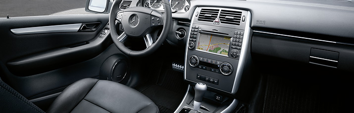 The optional sports package underlines the dynamic presence of the B-Class: starting with the 17-inch light-alloy wheels, the chrome-ringed fog lamps and the decorative reflecting strips on the rear bumper. Apart from this the sports package includes all the elegant chrome applications which form part of the exterior chrome package.